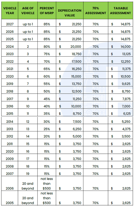 Additional Clarification from the Office of Policy and Management for the 2025 Grand List year (example is for a vehicle with an MSRP of $25,000):